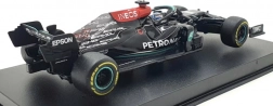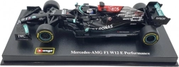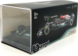 Ciesz się precyzyjnie wykonanym modelem bolidu Mercedes-AMG F1 W12 E Performance 2021 marki Bburago w popularnej skali 1:43. Model wiernie oddaje wyścigową specyfikację auta z numerem 77, którym w sezonie 2021 jeździł Valtteri Bottas, w tym autentyczne barwy, logotypy i detale nadwozia.