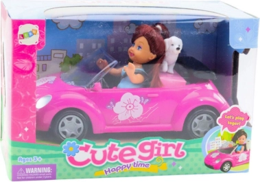 Mini lalka z różowym kabrioletem i pieskiem to uroczy zestaw do kreatywnej zabawy w odgrywanie ról. Sportowy kabriolet z ruchomymi kołami, lalka z ruchomymi kończynami oraz wierny piesek zachęcają do przygód w domu i w podróży. Rozwija wyobraźnię i motorykę małą i doskonale sprawdzi się także jako prezent.