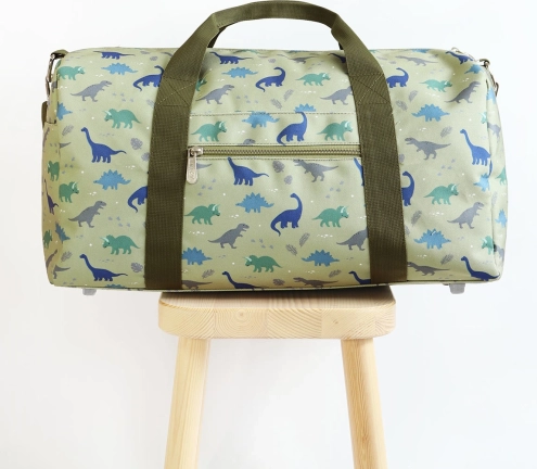 Lekka i wytrzymała dziecięca torba podróżna z motywem dinozaurów od A Little Lovely Company. Oferuje pojemność 26 l, trwały i lekki poliester, główną komorę z dodatkow ą kieszenią, dwie kieszenie boczne oraz przednią przegrodę na zamek. Dzięki odpinanemu paskowi na ramię i dwóm uchwytom wygodnie nosi się ją na wycieczki, zajęcia oraz jako bagaż podręczny do samolotu.