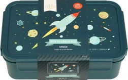 Urocze dziecięce pudełko śniadaniowe z kosmicznym motywem rakiety pomaga utrzymać owoce, warzywa, pieczywo i przekąski ładnie oddzielone. Praktyczna wyjmowana tacka z dwiema przegródkami czyni z niego świetny bento box do szkoły, na zajęcia i wycieczki. Szczelne, zatrzaskowe wieczko minimalizuje niechciane wylanie i dłużej utrzymuje świeżość posiłku.