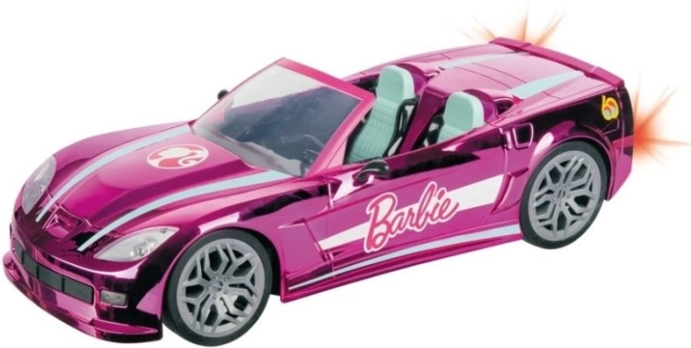 Stylowy różowy samochód RC dla lalek Barbie oferuje pełne zdalne sterowanie, częstotliwość 2,4 GHz, długość ok. 40 cm oraz miejsce dla dwóch lalek. Świetny design, świecące przednie i tylne światła oraz łatwe sterowanie gwarantują godziny kreatywnej zabawy. (Lalki sprzedawane oddzielnie.)