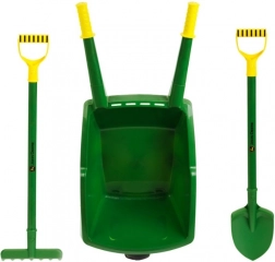 Ten wysokiej jakości zestaw w kultowych barwach JOHN DEERE jest idealny dla dzieci, które lubią pomagać w ogrodzie. Wytrzymała taczka z wygodnym uchwytem oraz lekka łopata i grabie są zaprojektowane z myślą o dziecięcych dłoniach, zapewniając bezpieczne i przyjemne użytkowanie podczas przenoszenia ziemi, piasku, liści czy trawy.