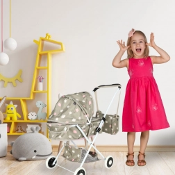 Stylowy głęboki wózek dla lalek ucieszy każdą małą opiekunkę. Został zaprojektowany z uwzględnieniem realistycznego designu i funkcjonalności, co wspiera dziecięcą wyobraźnię i kreatywność podczas zabawy.