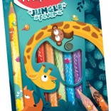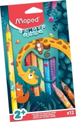 Kredki Maped Jungle Fever Jumbo to idealny wybór dla małych artystów od 2 lat z motywem dżungli. Dzięki trójkątnemu korpusowi i wytrzymałemu, miękkiemu grafitowi oferują intensywne kolory i bezpieczeństwo dla małych dzieci.