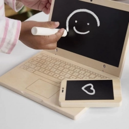 Pozwól dzieciom odkrywać świat dorosłych po swojemu. Ten przemyślany drewniany zestaw „praca z domu” oferuje autentyczne akcesoria w bezpiecznej i przyjemnej formie. „Laptop” i „telefon” z tablicą kredową zachęcają do nieskończonego pisania, rysowania i wymyślania historii bez marnowania papieru. Wysokiej jakości drewno z certyfikatem FSC jest przyjemne w dotyku i wytrzyma codzienną dziecięcą fantazję.