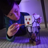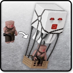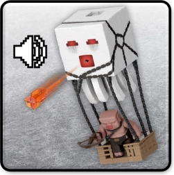 Przeżyj filmową przygodę Minecraft na żywo. Interaktywny Ghast ma przycisk na górze, który aktywuje światła, efekty dźwiękowe i wystrzela pomarańczowy pocisk z ust. Dzięki łańcuchom i podwieszanej „klatce” możesz łatwo odtworzyć sceny, w których Pigliny wykorzystują Ghasty do ataku.