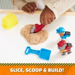 Rozpakuj frajdę od razu: dwie ekskluzywne figurki Charger i Wheeler w ikonicznych strojach Rubble & Crew, 85 g Kinetic Build‑It Sand oraz para narzędzi ręcznych do nabierania, formowania i cięcia. Zestaw idealny dla małych budowniczych, którzy kochają dynamiczne historie i zabawę sensoryczną.