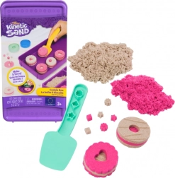 Twórz, układaj warstwy i serwuj kolorowe „ciasteczka” z magicznego piasku dzięki przenośnemu zestawowi Kinetic Sand Cookie Box. W komplecie znajduje się 227 g różowego i naturalnego piasku, dwustronne foremki, szpatułka z mini stempelkami oraz praktyczna walizeczka do przechowywania i zabawy w dowolnym miejscu. Piasek nie wysycha, nie klei się do rąk i rozwija małą motorykę oraz kreatywność dzieci od 3 lat.