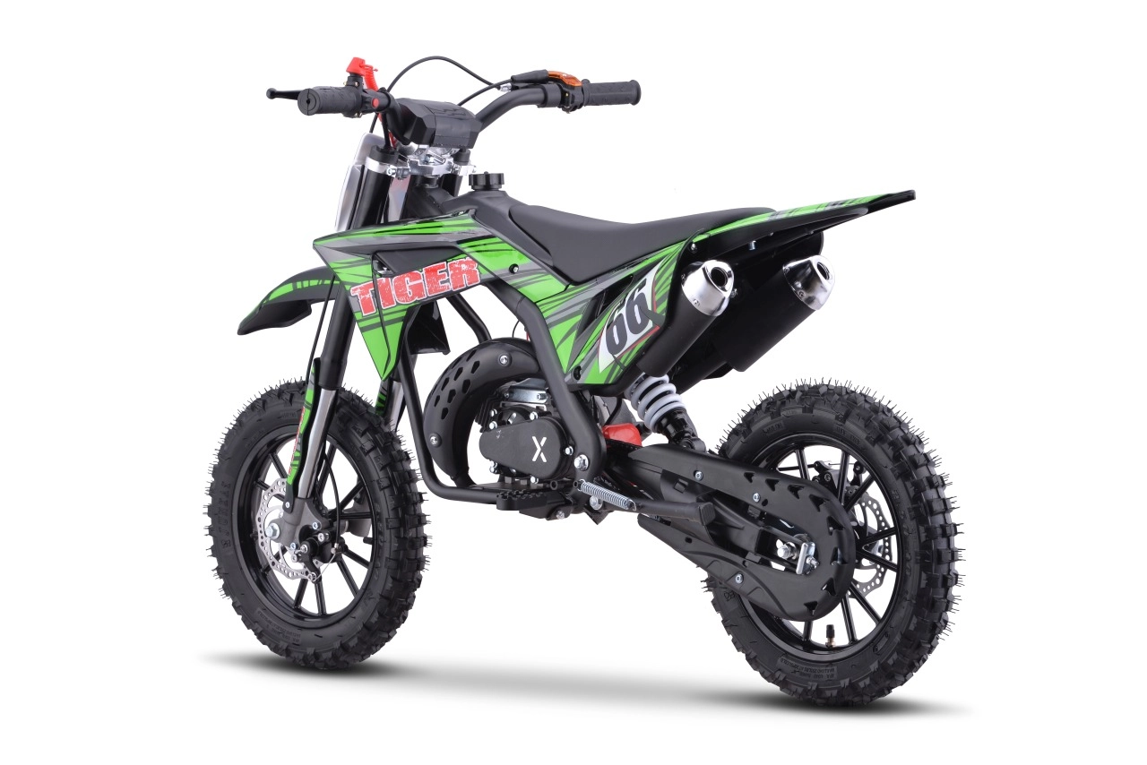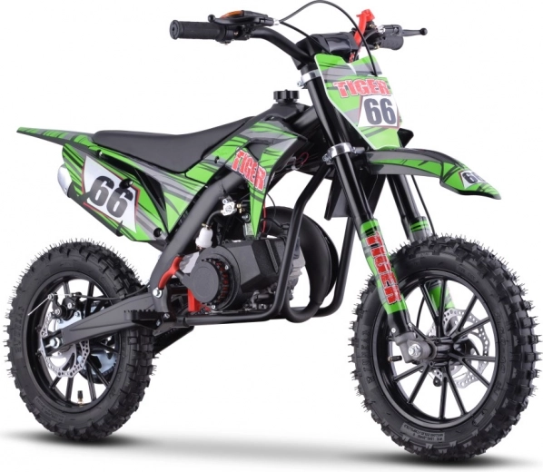 Dziecięcy motocykl terenowy Tiger 49cc oferuje optymalną zabawę dla młodych jeźdźców z jego wysokiej jakości i trwałą konstrukcją, idealną na tereny off-road.