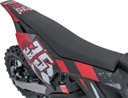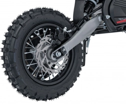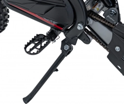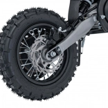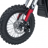 Regulacja prędkości i momentu obrotowego na kluczyk pozwala dopasować motocykl do umiejętności użytkownika – świetne dla początkujących i zaawansowanych. Hydrauliczny teleskopowy widelec z przodu oraz regulowany tylny amortyzator zapewniają stabilność i kontrolę w terenie. Wydajne hamulce tarczowe na obu kołach dbają o pewne zatrzymanie.