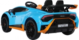 Niebieskie nadwozie z pomarańczowymi akcentami i dopracowanymi kołami nadaje wygląd prawdziwego LAMBORGHINI STO, który przyciąga wzrok od pierwszego spojrzenia.