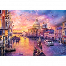 Zrelaksuj się przy pięknej scenie weneckiego Grand Canal o zachodzie słońca. Puzzle 1000-elementowe oferują żywe kolory, precyzyjny wykrojnik i solidne elementy, które idealnie do siebie pasują. Doskonały prezent dla miłośników Wenecji i doświadczonych układaczy.