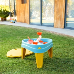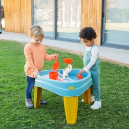 Konstrukcja z mocniejszymi nogami zapewnia wysoką stabilność, a zaokrąglone krawędzie gwarantują bezpieczne użytkowanie nawet dla najmłodszych. Wysokiej jakości plastik z ochroną UV utrzymuje intensywne kolory przez długi czas. W zestawie znajdziesz również 5 przydatnych akcesoriów do kopania, nabierania i wodnych eksperymentów.