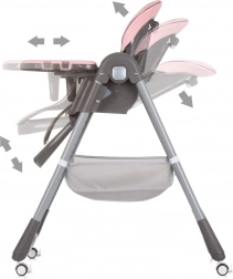 Aż 7 wysokości siedziska, 4 pozycje oparcia oraz 2 pozycje podnóżka zapewnią wygodę podczas jedzenia i odpoczynku. Siedzisko z ekoskóry jest miękkie i łatwe do czyszczenia.