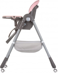 5‑punktowe pasy bezpieczeństwa z miękkimi nakładkami na ramiona, stabilna konstrukcja oraz 4 kółka do łatwego przemieszczania. Pałąk z zabawkami zajmie dziecko w oczekiwaniu na posiłek.