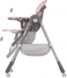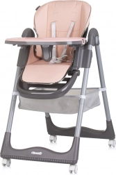 Praktyczne i wygodne krzesełko do karmienia dla dzieci do 15 kg z ponadstandardowym wyposażeniem dla bezpiecznego i spokojnego posiłku. Oferuje 4 pozycje oparcia pleców, 7 wysokości siedziska, regulowany podnóżek oraz miękką ekoskórę dla łatwej pielęgnacji. O bezpieczeństwo dbają 5‑punktowe pasy i stabilna konstrukcja z kółkami do łatwego przemieszczania. W zestawie podwójna tacka, pałąk z zabawkami oraz kosz na akcesoria.