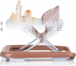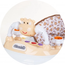 Interaktywne chodzik CHIPOLINO Little Cow Mocca jest idealne dla dzieci do 12 kg, które już samodzielnie siedzą. Oferuje szeroką podstawę dla stabilności, 3 pozycje wysokości siedziska, przednie kółka obrotowe 360° oraz interaktywny panel wspierający rozwój wzroku i słuchu. Dzięki 6 zabezpieczeniom chroni przed przewróceniem i upadkiem ze schodów.