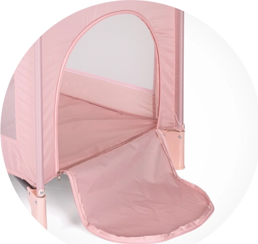 Dzięki szybkiemu składaniu i lekkiej konstrukcji łatwo zabierzesz je na wakacje, do dziadków lub wykorzystasz jako drugie łóżeczko. Boczne wejście na zamek umożliwia starszym dzieciom samodzielne wchodzenie do środka. Plastikowe osłony krawędzi zwiększają bezpieczeństwo, a torba transportowa chroni łóżeczko przed zabrudzeniami podczas przechowywania i transportu.