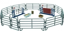 Łączone panele zagrody oraz kolorowe elementy skokowe tworzą bezpieczną przestrzeń do treningu i pielęgnacji koni. Świetne do inscenizowania różnych scen zabaw.