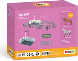 Realistyczny zestaw dla małych miłośników stajni: zagroda z miejscem do mycia do pielęgnacji koni, ręcznie malowane detale i PVC bez ftalanów. Surowo testowane zgodnie z międzynarodowymi standardami, odpowiednie od 3 lat. Konie nie są częścią zestawu.