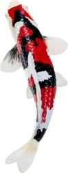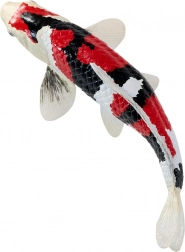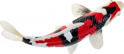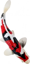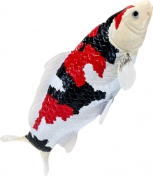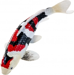 Typowe połączenie bieli, czerni i czerwieni wiernie naśladuje prawdziwe koi Showa i podkreśla detale łusek oraz płetw.