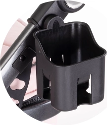 Wózek jest wyposażony w akcesoria, które obejmują torbę na akcesoria, uchwyt na butelkę i pokrowiec na nogi.