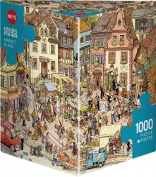 Odkryj magię układania z HEYE Puzzle Targ 1000 elementów. Ten zestaw puzzli jest dziełem kreatywnego duetu Doris Göbel i Petera Knorra, co gwarantuje niepowtarzalne wrażenia artystyczne.