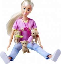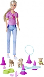 Zestaw zawiera lalkę Steffi ubraną w różowy top i dżinsy, przygotowaną do szkolenia psów. Kreatywna zabawa dla wszystkich grup wiekowych.