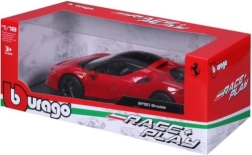 Model posiada oficjalną licencję FERRARI i jest umieszczony w atrakcyjnym opakowaniu BBURAGO Race & Play z okienkiem – idealny jako prezent dla fanów szybkich aut.