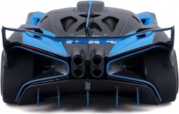 Ten realistyczny model samochodu sportowego w niebiesko‑czarnym wykończeniu wiernie oddaje kształty i charakter ikonicznego hipersamochodu BUGATTI Bolide. Metalowe nadwozie, precyzyjne detale i funkcjonalne elementy ucieszą każdego miłośnika szybkich aut.