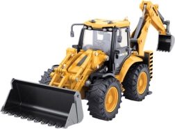Model posiada wiele ruchomych części, które zwiększają jego funkcjonalność. Przednia łyżka jest wysuwna oraz można ją podnosić i opuszczać, co pozwala na realistyczne odwzorowanie procesu załadunku i transportu materiałów. Tylne ramię koparki ma ruchomą łyżkę umożliwiającą precyzyjną symulację kopania i prac ziemnych, co rozszerza możliwości zabawy.