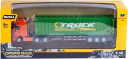 Ciężarówka z przyczepą kontenerową w skali 1:50 to bardzo szczegółowy model, który realistycznie odwzorowuje prawdziwe pojazdy transportowe. Jest idealnym dodatkiem dla kolekcjonerów oraz dzieci od 8 lat, które chcą się bawić i rozwijać kreatywność.
