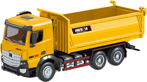 Model wyposażono w ruchomą skrzynię ładunkową, którą można podnosić i opuszczać, co pozwala symulować proces załadunku i rozładunku. Autentyczne oznaczenia, precyzyjnie wykonana kabina kierowcy oraz realistyczne detale konstrukcyjne sprawiają, że model wygląda jak prawdziwy samochód ciężarowy na plac budowy. Obracane koła zapewniają płynne poruszanie się po różnych nawierzchniach, zwiększając interaktywność modelu.
