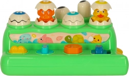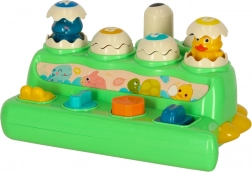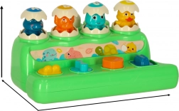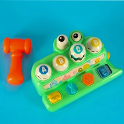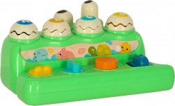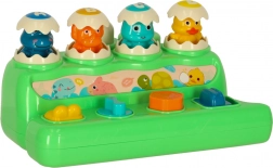 Ta interaktywna gra zapewniająca zabawę łączy elementy zręczności, edukacji i ruchu. Zadaniem dziecka jest najpierw wciśnięcie specjalnego przycisku, który powoduje, że jedno ze zwierząt podskakuje, a następnie wbicie go z powrotem młotkiem. Dzieci nie tylko bawią się, ale także uczą cierpliwości i skupienia.