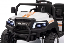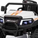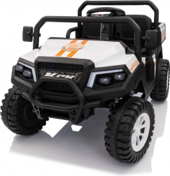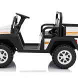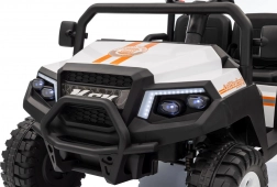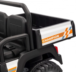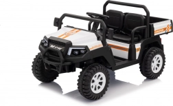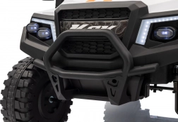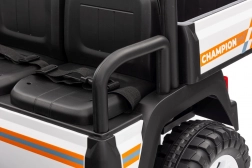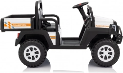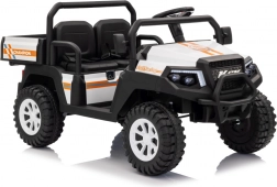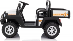 Solidny dziecięcy elektryczny pick‑up Champion w białym kolorze oferuje mocny napęd 24 V 2×200 W, komfortowe koła EVA 29×12 cm z amortyzacją oraz bezpieczne zdalne sterowanie 2,4 GHz z przyciskiem STOP. Dwa siedzenia z eko‑skóry, światła LED, pojemny tylny bagażnik z otwieraną burtą i udźwig 60 kg zapewnią mnóstwo zabawy w domu i w ogrodzie.