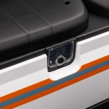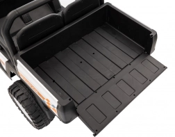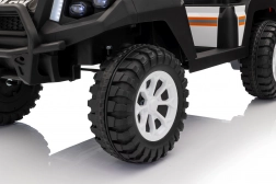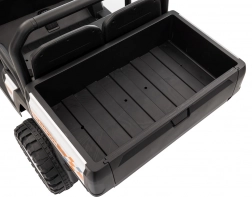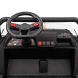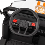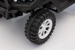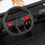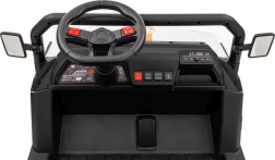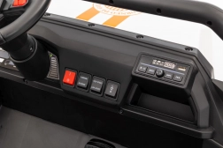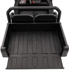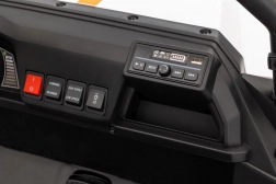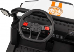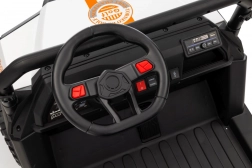 Sterowanie jest proste – dziecko może jechać do przodu i do tyłu w 2 prędkościach, a rodzice mają pełną kontrolę przez pilot 2,4 GHz z 3 prędkościami i awaryjnym przyciskiem STOP. Panel audio z radiem FM, MP3, Bluetooth i USB, dźwiękami i klaksonem w kierownicy rozkręci każdą przejażdżkę. Praktyczny tylny bagażnik z otwieraną burtą pomieści zabawki i przekąski.