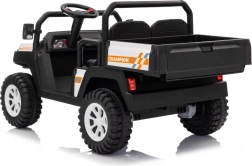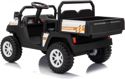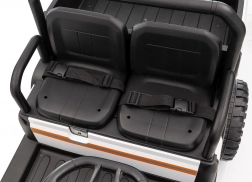Mocny 24‑woltowy pick‑up dla małych odkrywców poradzi sobie w ogrodzie i na twardej nawierzchni. Dwa silniki 2×200 W zapewniają płynny start i pewny uciąg, a duże koła EVA i amortyzacja z przodu oraz z tyłu tłumią nierówności dla komfortowej i bezpiecznej jazdy. Dwumiejscowe siedzenie z eko‑skóry z pasami ucieszy rodzeństwo lub kolegę.
