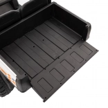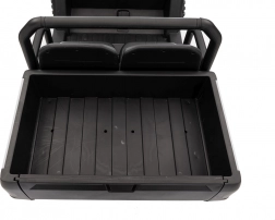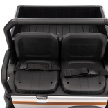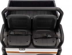 - Komfort i bezpieczeństwo: dwumiejscowe siedzenia z eko‑skóry z pasami, udźwig 60 kg