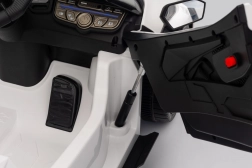 Rodzicielski pilot 2,4 GHz z wyborem 3 prędkości i funkcją STOP daje pełną kontrolę nad jazdą. Dzieci ucieszy panel multimedialny z Bluetooth, MP3, USB i radiem FM, klaksonem oraz dźwiękami w kierownicy. Otwierane drzwi, siedzisko z ekoskóry i pasy bezpieczeństwa podkreślają premiumowe wrażenia.