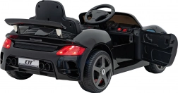 Stylowy elektryczny samochodzik RUF CTR3 w eleganckim czarnym kolorze oferuje dzieciom realistyczne wrażenia z jazdy. Wyposażony w 2× 35 W silniki, wydajny akumulator 12 V 9 Ah, piankowe koła EVA dla cichej jazdy oraz otwierane drzwi. Dla bezpieczeństwa i komfortu nie brakuje pasa bezpieczeństwa, płynnego startu oraz zdalnego sterowania 2,4 GHz z awaryjnym przyciskiem Stop. LED-owe przednie i tylne światła oraz panel multimedialny z MP3, Bluetooth i USB gwarantują mnóstwo zabawy.