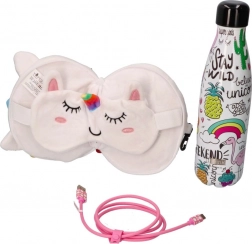 Ciesz się komfortem w każdej podróży dzięki uroczej poduszce podróżnej z maską w kształcie jednorożca. Poduszka zapewnia przyjemne podparcie karku, a maska na oczy pomaga zablokować światło, umożliwiając niezakłócony odpoczynek w samochodzie, samolocie i pociągu.