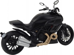 Ten precyzyjnie wykonany model łączy solidne metalowe nadwozie z plastikowymi detalami, dzięki którym wyróżniają się realistyczne linie, wydechy, tarcze i teksturowane siedzenie. Zintegrowane światło i dźwięk (3× AG13, w zestawie) potęgują wrażenia z zabawy oraz ekspozycji na stojaku.