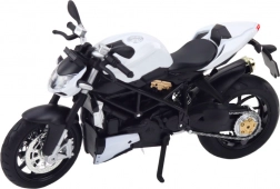 Odkryj wysokiej jakości model kolekcjonerski, który ucieszy dzieci i dorosłych fanów dwóch kółek. Metalowe nadwozie, starannie dopracowane elementy oraz sportowy wygląd inspirowany maszynami wyścigowymi nadają modelowi autentyczny charakter. Efekty światła i dźwięku zasilane 3× AG13 (w zestawie) potęgują wrażenia z zabawy i ekspozycji.