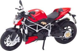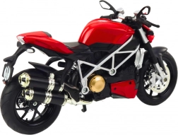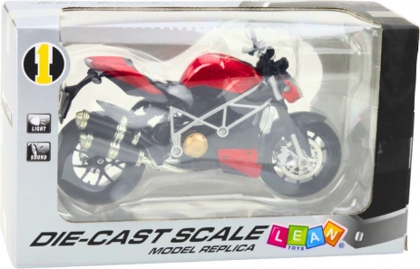 Ten czerwony sportowy motocykl w skali 1:12 zachwyca precyzyjnymi detalami i solidnym wykonaniem. Dzięki metalowemu korpusowi i plastikowym dodatkom wygląda realistycznie i świetnie prezentuje się na półce, biurku czy w gablocie. Zintegrowane światła i dźwięki zasilane bateriami AG13 potęgują wrażenie prawdziwej jazdy.