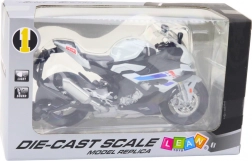 Sportowy metalowy model motocykla z precyzyjnie wykonanymi detalami jest doskonałym wyborem dla każdego entuzjasty motoryzacji. Posiada metalową i plastikową konstrukcję, która zapewnia jego trwałość i autentyczny wygląd. Efekty świetlne i dźwiękowe dodają realizmu wrażeniom z jazdy.