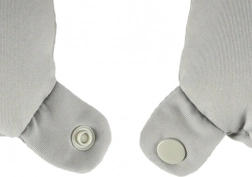 Poduszka jest kompaktowa i łatwo mieści się w każdym bagażu. Można ją łatwo przymocować do bagażu dzięki praktycznemu uchwytowi.