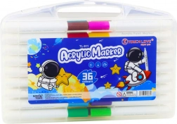 Zestaw akrylowych markerów to idealne narzędzie dla każdego młodego artysty i miłośnika sztuki. Wysokiej jakości markery w 36 intensywnych kolorach umożliwiają tworzenie wyjątkowych projektów artystycznych i dekoracyjnych. Dzięki akrylowemu składowi tuszu kolory są odporne na blaknięcie i zużycie oraz dobrze pokrywają różne powierzchnie, takie jak papier, tektura, drewno, plastik czy szkło. Mocna pigmentacja sprawia, że każdy rysunek staje się wyrazisty i pełen barw, co czyni je idealnymi zarówno do codziennych szkiców, jak i profesjonalnych prac artystycznych.