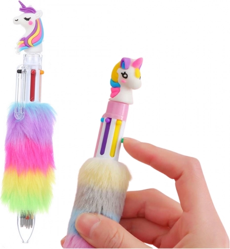 - 1× długopis z jednorożcem i kolorowym futerkiem