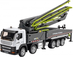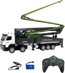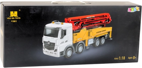 - RC betoniarka pompowa HUI NA 1:18, pilot 2,4 GHz, akumulator 7,4 V, kabel USB do ładowania, pudełko prezentowe