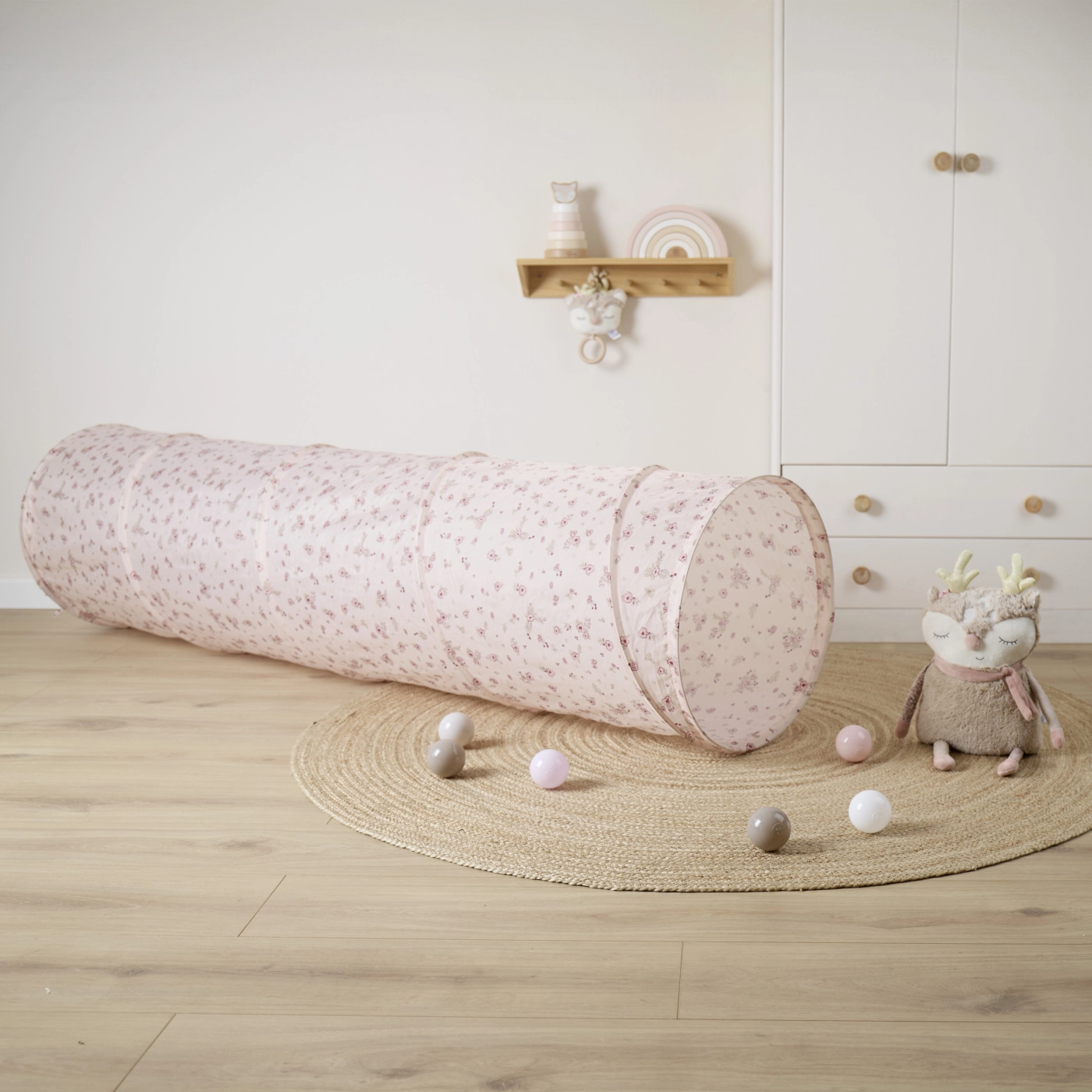 Samorozkładający się tunel zabawowy z kolekcji Dreamy Flowers zamienia każdy dziecięcy pokój w przytulną kryjówkę. Wykonany z trwałego poliestru, który jest łatwy w czyszczeniu, ten tunel zapewnia niekończące się godziny zabawy dla małych dzieci.